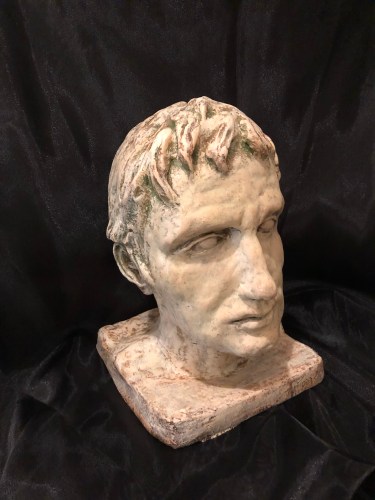 ‘“Augustus”,2018, Şamotlu kil üzeri patine, Elde şekillendirme, 30x18x19cm’